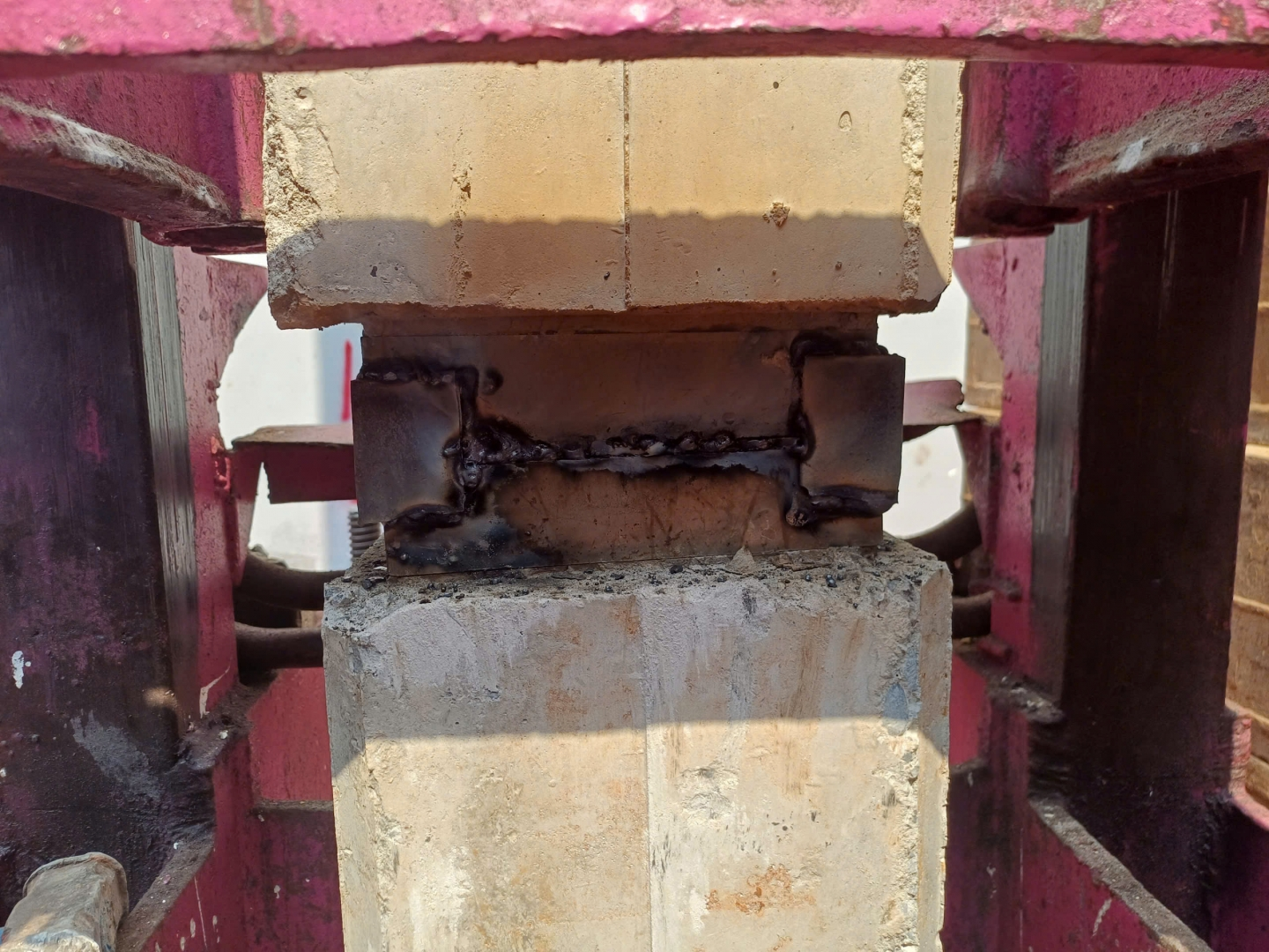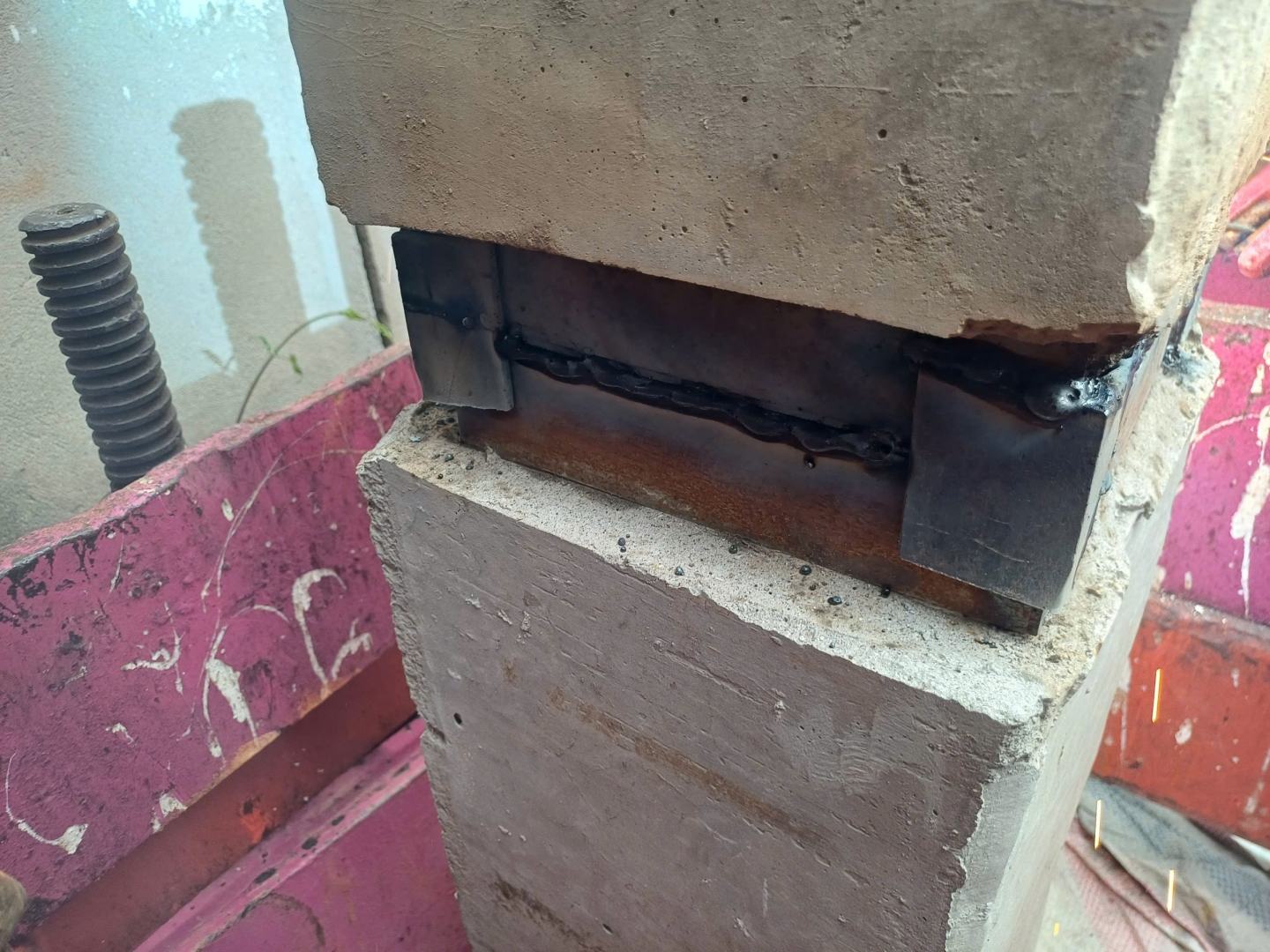 Sau khi định vị bằng chốt giữa, bước tiếp theo là hàn liên kết giữa 2 đầu cọc.